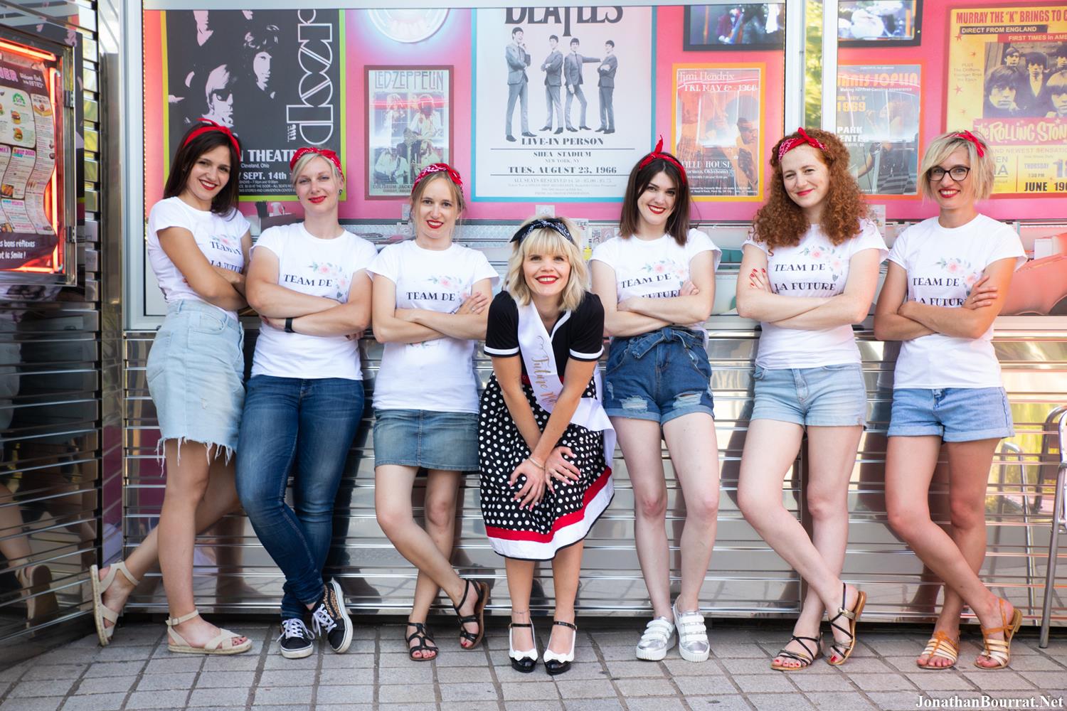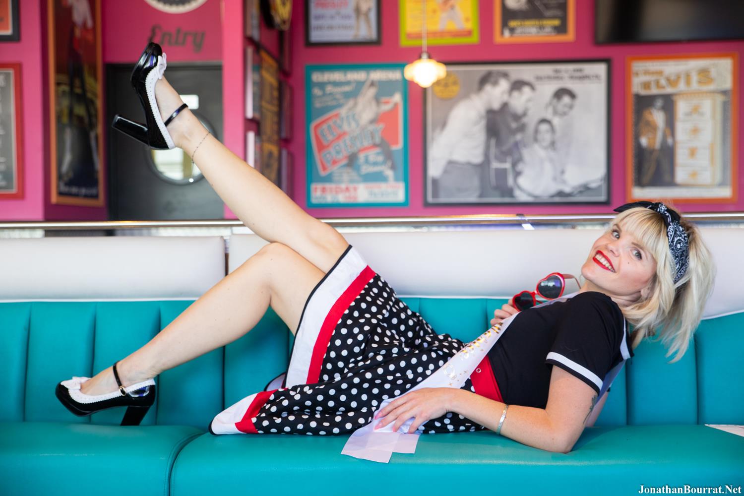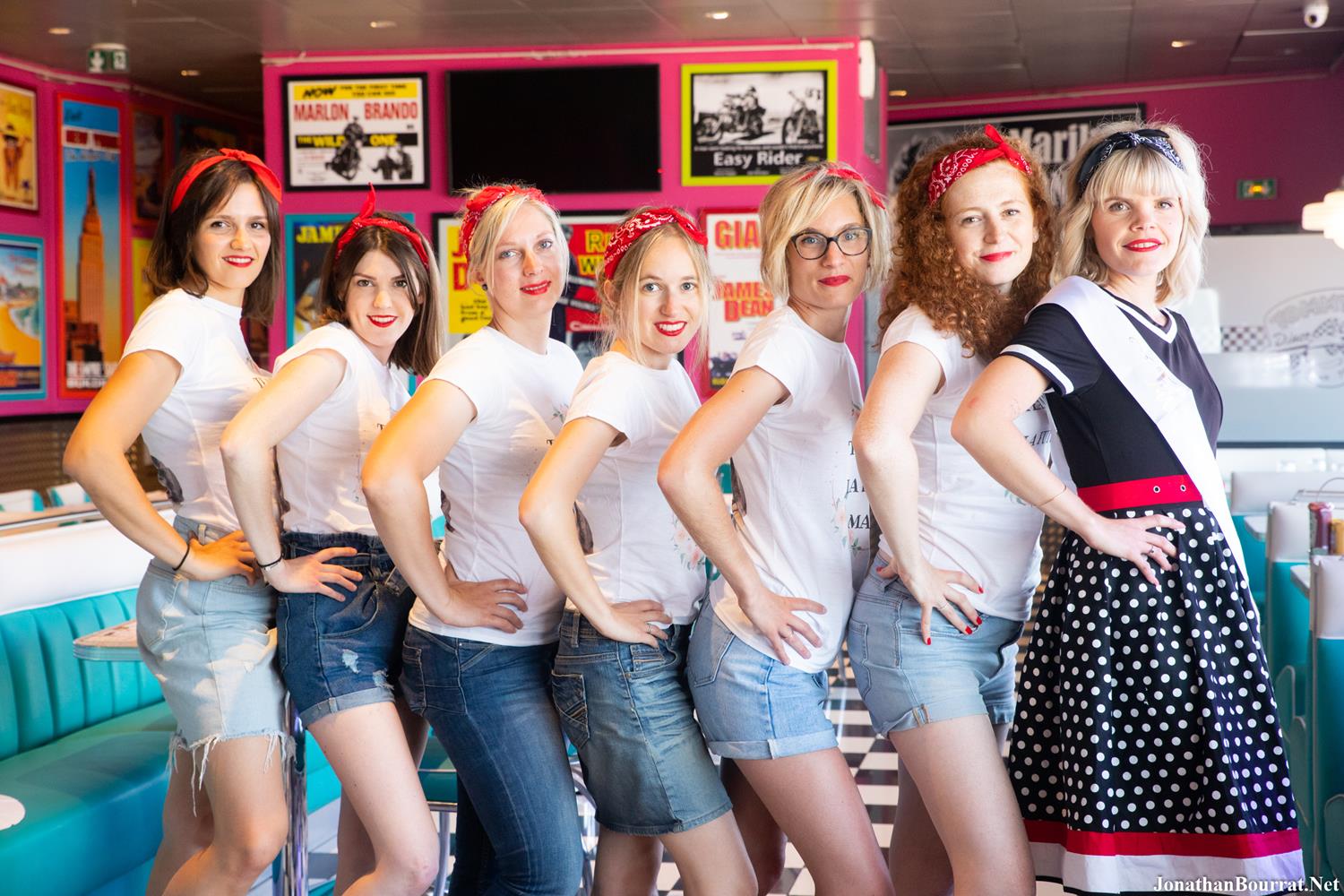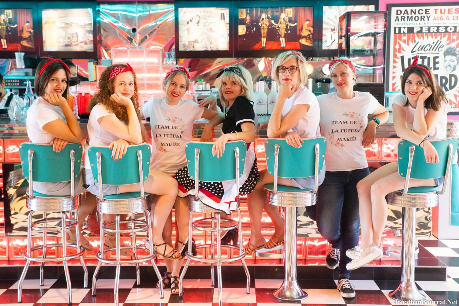 Nouvelle séance d’enterrement de vie de jeune fille en style vintage et rétro réalisée à Lyon! Le groupe de copines a opté pour le restaurant Tommy’s Diner (métro de Carré de Soie), un choix très pertinent car l’établissement offre un décors très stylisé et typique des 50’s. D’ailleurs, j’y ai déjà réalisé plusieurs shootings (suivez ce lien pour découvrir une autre galerie). 😉